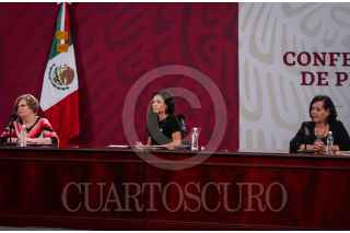 CIUDAD DE MÉXICO, 13JUNIO2020.- Luisa María Alcalde Luján, secretaria del Trabajo y previsión Social; Nadine Gasman Zylbermann, presidenta del Instituto Nacional de las Mujeres (Inmujeres) y Luz Beatriz Rosales Esteva, titular del Instituto Nacional de Desarrollo Social (Indesol) durante la conferencia de Programas de Bienestar en el Palacio Nacional. FOTO: ANDREA MURCIA/CUARTOSCURO.COM