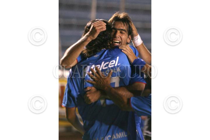 MEXICO D.F. 15MARZO2006.- César "Chelito" Delgado festeja junto con Alejandro Corona, el segundo gol del la máquina contra el equipo de Santos, en el Torneo de Clausura 2006, en el Estadio Azul. FOTO: Diego Gallegos/CUARTOSCURO.COM