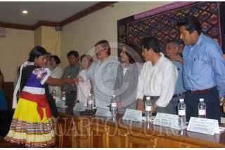 CHILPANCINGO, GUERRERO 15MARZO2006.- A esta mujer indígena la pobreza no le es impedimento para hacer uso de las nuevas tecnologías de comunicación, esto durante la entrega de recursos por parte del IGC, a mujeres indígenas e integrantes de danzas tradicionales del Estado, como parte del Programa de Apoyo a las Culturas Municipales y Comunitarias (PACMYC), en el auditorio del Palacio de la Cultura. FOTO: Oscar Alvarado/CUARTOSCURO.COM