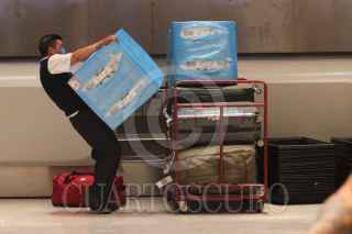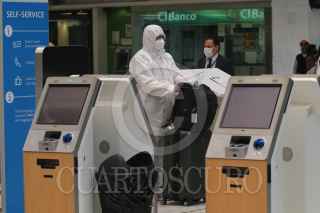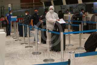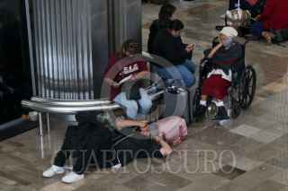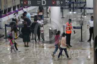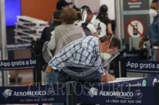 CIUDAD DE MÉXICO, 15JUNIO2020.- Como medidas de prevención ante el contagio del Covid-19, continúan tomando temperatura, el uso de cubrebocas y la instalación de unifilas en diferentes Aerolíneas del Aeropuerto Internacional de la Ciudad de México (AICM). Los pasajeros relajan la sana distancia mientras esperan su turno de ingresar a su vuelo. FOTO: GRACIELA LÓPEZ /CUARTOSCURO.COM