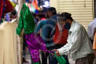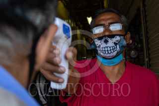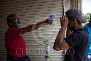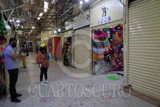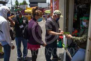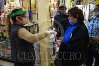 CIUDAD DE MÉXICO, 15JUNIO2020.- Locatarios del Mercado de Sonora aplican medidas sanitarias; como tomar la temperatura a los que ingresan, la aplicación de gel antibacterial, y el uso de cubrebocas obligatorio. Además todos los comerciantes usan cubrebocas con careta y en el piso han colocado señalizaciones para que los clientes guarden su sana distancia a la hora de sus compras, con el fin de evitar conglomeraciones van a seguir un rol de abrir un día sí y otro no. FOTO: MOISÉS PABLO/CUARTOSCURO.COM