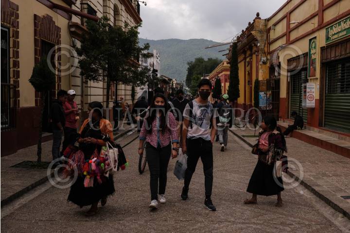 SAN CRISTÓBAL DE LAS CASAS, CHIAPAS, 15JUNIO2020.- Con la nueva normalidad en marcha, las calles del centro del municipio retoman el movimiento y cientos de personas circulan la zona. Chiapas se encuentra en semáforo rojo y con las cifras subiendo diariamente, al día de hoy se contabilizan 3255 casos confirmados y 218 defunciones por coronavirus. FOTO: ISABEL MATEOS /CUARTOSCURO.COM