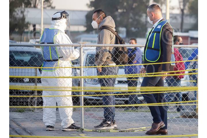 PUEBLA, PUEBLA, 16JUNIO2020.- Con estrictos protocolos de seguridad ante la pandemia de Covid-19, regresa un porcentaje de trabajadores a capacitación a la planta automotriz Volkswagen después de tres meses sin actividades. FOTO: MIREYA NOVO/CUARTOSCURO.COM