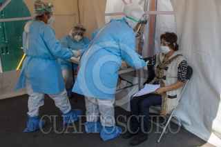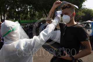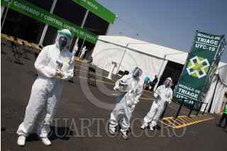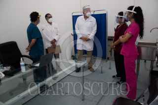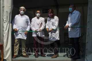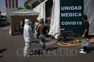 CIUDAD DE MEXICO, 16JUNIO2020.- En la Central de Abasto se inauguró el Módulo Triage para atender a los posibles casos que se presenten en el lugar de Covid-19, este se suma a los esfuerzos que han implementado las autoridades de la CEDA y la Secretaría de Salud, ya que previamente se habían instalado una Unidad Médica para Covid-19 y un módulo de Toma de Muestras Covid-19, además de las brigadas que recorren los pasillos del lugar para hacer tomas de temperatura a comerciantes. El lugar cuenta con dos consultorios y con el personal médico necesario para hacer la valoración del paciente y así poder canalizarlo a un hospital si su condición médica lo requiere. FOTO: MOISÉS PABLO/CUARTOSCURO.COM