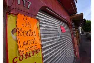 Los letreros de “Se Renta” comienzan a ser más comunes en la ciudad, con la continuación del Semáforo Rojo en el Estado de México ante la contingencia por COVID-19 muchos negocios que continúan cerrados han empezado a vaciar los locales y los mismos ya se encuentran en renta, reportan bajas ventas y poca entrada de ingresos por lo que prefieren cerrar de forma permanente. FOTO: CRISANTA ESPINOSA AGUILAR /CUARTOSCURO.COM