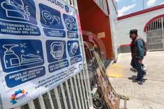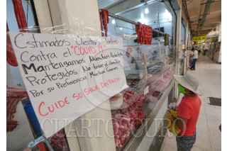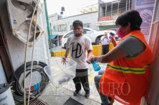 Mercados de la ciudad de Toluca han implementado medidas sanitarias para permitir el acceso a los clientes a realizar sus compras, como la toma de temperatura corporal y gel antibacterial, y en los negocios se instalaron plásticos como barrera entre los clientes, productos y vendedores, para garantizar la salud de locatarios y consumidores ante la contingencia por COVID-19. FOTO: CRISANTA ESPINOSA AGUILAR /CUARTOSCURO.COM