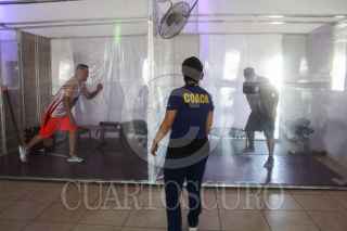 CIUDAD JUÁREZ, CHIHUAHUA. 17JUNIO2020.- Filtros sanitarios, aplicación de Gel, toma de temperatura y plásticos, fueron medidas que tomaron los dueños de Gimnasios en la Capital Juarense. Medidas de la "Nueva Normalidad". FOTO: NACHO RUÍZ/CUARTOSCURO.COM