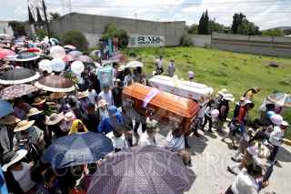 ACAJETE, PUEBLA, 18JUNIO2020.- Familiares y amigos dan el último adiós a Gardenia y Dulce, madre e hija que fueron asesinadas y calcinadas al interior de un automóvil en la entidad poblana. Familiares de las víctimas exigieron al gobernador hacer justicia, así como a las autoridades a revisar las cámaras de seguridad e investigar a la expareja de Gardenia. FOTO: MIREYA NOVO /CUARTOSCURO.COM