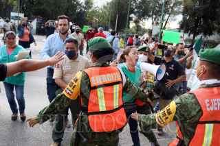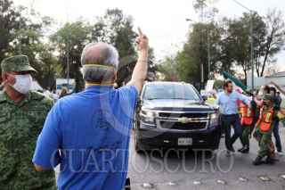 CUERNAVACA, MORELOS, 19JUNIO2020.- Andrés Manuel López Obrador, presidente de México, visito la capital del estado. Primero, en su habitual conferencia de la mañana realizada en las instalaciones del Tercer Regimiento Blindado de Reconocimiento de la 24 va Zona Militar, exonero a los colaboradores y familiares del gobernador Cuauhtémoc Blanco, que fueron investigados por la Unidad de Inteligencia Financiera de la Secretaria de Hacienda y Crédito Público. “En el caso de Morelos ha habido acusaciones, se han hecho investigaciones, pero no se ha encontrado ningún delito o presunto delito, esto me lo informó Santiago Nieto, de Inteligencia Financiera”, dijo el presidente. Afuera activistas del Frente Nacional Anti-AMLO, realizaron una caravana de autos exigiendo su salida, eso concito pequeños conatos de violencia entre detractores y defensores del primer mandatario. FOTO: MARGARITO PÉREZ RETANA /CUARTOSCURO.COM