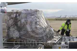 TOLUCA, ESTADO DE MÉXICO, 19JUNIO2020.- Un nuevo cargamento de insumos médicos arribó, esta mañana, al Aeropuerto Internacional de Toluca. El nuevo cargamento para hacer frente a la pandemia por Covid-19 consta de e 53 equipos de ventilación, los cuales servirán para reforzar el apoyo ventilatorio de los pacientes graves de coronavirus. FOTO: PRESIDENCIA /CUARTOSCURO.COM