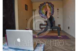 Monserrat Cuadros instructora de Yoga infantil y para adultos, en tiempos de COVID-19 mudo sus clases a los dispositivos tecnológicos a través de diversas aplicaciones y redes sociales, buscando mantener la dinámica de la práctica diaria para poder ayudar a mantener la salud mental. En la plataforma Shalavirtual.com , grupo de 6 instructores de diferentes estados como Morelos, Nuevo León, Querétaro, Estado de México, Jalisco ofrecen clases virtuales con una cuota de recuperación y también se dan servicios gratuitos para personal de salud, con prácticas cortas, para que puedan sobrellevar el estrés y ansiedad que experimentan a través de su trabajo. El próximo domingo 21 de junio se celebra el Día Internacional del Yoga, disciplina considerada como parte fundamental de la salud mental de los humanos y se conmemora los beneficios que tiene para la salud física, mental y espiritual y lo celebrarán en esta ocasión con 5 horas continuas en Facebook de yoga; auxiliar para no sumergirse en el estrés durante esta contingencia, las clases ayudan para crear una rutina sana con unos minutos para escuchar tu cuerpo y dejando de lado cualquier pensamiento negativo y más en estos tiempos como el miedo, el estrés. FOTO: CRISANTA ESPINOSA AGUILAR /CUARTOSCURO.COM