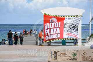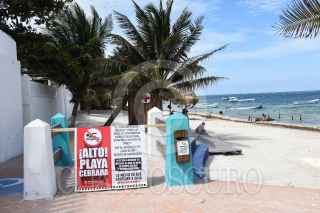 PUERTO MORELOS, QUINTANA ROO, 19JUNIO2020.- El gobierno municipal colocó lonas con mensajes para alertar a la ciudadanía sobre el riesgo que significa acudir en estos momentos a las playas del destino, ya que pueden ser puntos de contagios de Covid-19. A su vez, las lonas tienen también el objetivo de inhibir la presencia de bañistas este domingo, cuando se celebre el Día del Padre, ya que significa un riesgo alto de propagación del virus. La próxima semana, la entidad continuará en color naranja. FOTO: ELIZABETH RUIZ /CUARTOSCURO.COM