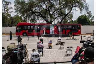 CIUDAD DE MÉXICO, 20JUNIO2020.- Claudia Sheinbaum Pardo, jefa de Gobierno de la Ciudad, acompañada de Guillermo Calderon, titular de transportes Eléctricos, en la Ciudad, encabezaron la ceremonía con motivo del 15 aniversario del Metrobus. FOTO: ANDREA MURCIA/CUARTOSCURO.COM