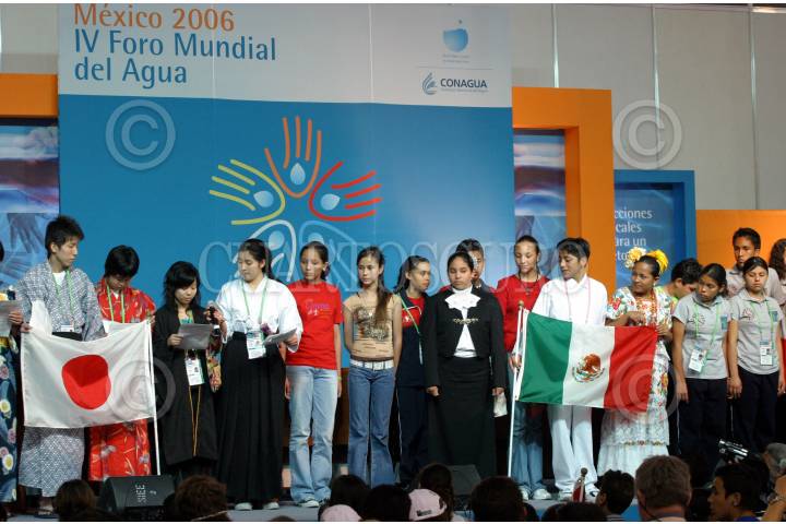 MEXICO, D.F., 16MARZO2006.- Niños mexicanos y japoneses se tomaron la foto del recuerdo al finalizar el foro infantil del agua, en el marco del IV Foro Mundial del Agua México 2006, en el Centro Banamex. FOTO: Moisés Pablo/CUARTOSCURO.COM