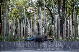 CIUDAD DE MÉXICO, 20JUNIO2020.- Una persona en situación de calle toma un breve descanso en la explanada del parque Juan Rulfo. FOTO: MARIO JASSO /CUARTOSCURO.COM