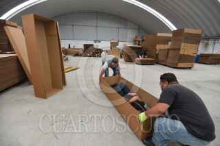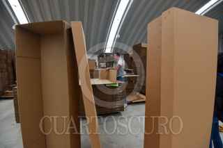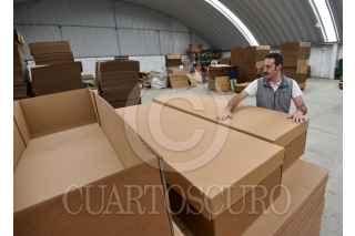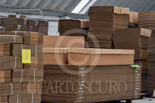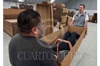 La empresa KJ Cajas de Cartón ubicada en Toluca y dirigida por Gonzalo Galera, se dedica a la elaboración de cajas de cartón de todo tipo, a raíz de la contingencia por COVID-19 en abril comenzó a pensar en una idea para poder liberar espacios en los hospitales, y pudieran desocupar camillas, y al mismo tiempo de una forma digna se puede hacer el manejo de los cadáveres, y comenzó la producción de ataúdes de este material, en 15 días desarrolló su idea, probando con diversos cartones, el diseño final le permite soportar hasta 125 kilos y es muy fácil de armar, el ataúd va engrapado, el material es cartón corrugado y todo es papel reciclado; los ataúdes se han distribuido en Colima, Hidalgo, zona metropolitana y en pláticas con la península de Yucatán. FOTO: CRISANTA ESPINOSA AGUILAR /CUARTOSCURO.COM