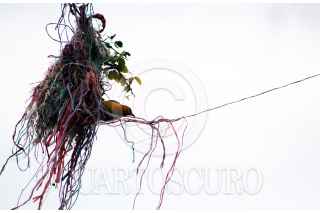 TEMIXCO, MORELOS, 23JUNIO2020.- Un pájaro sale de su nido hecho de tiras de plástico, signo de la contaminación en el poblado indígena de Tetlama. FOTO: MARGARITO PÉREZ RETANA /CUARTOSCURO.COM