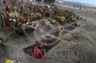 VALLE DE CHALCO, ESTADO DE MÉXICO, 23JUNIO2020.- Se realizaron dos inhumaciones como probables Covid-19 en el Panteón Municipal Xico. Entre 11 sepultureros han cavado alrededor de 360 fosas de finales de abril para sepultar muertes naturales y por causa de Covid-19. La administración ha confirmado 17 casos confirmados de Covid-19. FOTO: GRACIELA LÓPEZ /CUARTOSCURO.COM