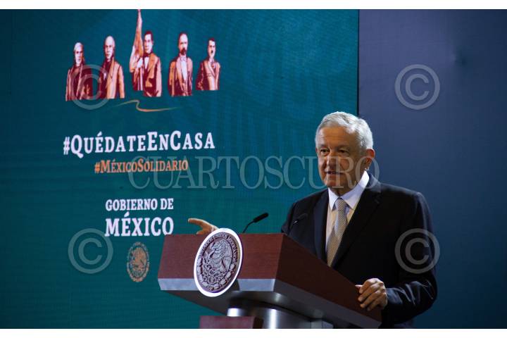 CIUDAD DE MÉXICO, 24JUNIO2020.- Andrés Manuel López Obrador, presidente de México acompañado de Claudia Sheinbaum Pardo, jefa de Gobierno de la Ciudad; Olga Sánchez Cordero, secretaria de Gobernación; Alfonso Durazo, secretario de Seguridad Pública; Luis Cresencio Sandoval, secretario de la Defensa Nacional; José Rafael Ojeda, secretario de Marina encabezaron por primera vez conferencia de prensa matutina en el Antiguo Palacio de Ayuntamiento. FOTO: ANDREA MURCIA/CUARTOSCURO.COM