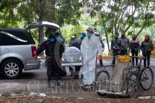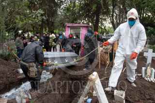 CIUDAD DE MÉXICO, 24JUNIO2020.- Se realizó una inhumación por muerte a causa de Covid-19 en el Panteón San Isidro, en la alcaldía Azcapotzalco. Alrededor de 30 inhumaciones se realizan por semana. Se han confirmado 23 377 muertes en todo el país y 43 596 confirmados en la capital. FOTO: GRACIELA LÓPEZ /CUARTOSCURO.COM