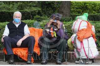 CIUDAD DE MEXICO, 24JUNIO2020.- Se estima que la pandemia de COVID-19, dejará un estimado de 9 millones más de pobres, esto según datos del Consejo Nacional de Evaluación de la Política de Desarrollo Social (Coneval). Así mismo creo una brecha más notoria de desigualdad en cuanto a cuidados y atención de los diferentes sectores de la población. En imagen, un adulto mayor y una persona en situación vulnerable comparten banca en el Parque de los Venados. FOTO: ROGELIO MORALES /CUARTOSCURO.COM