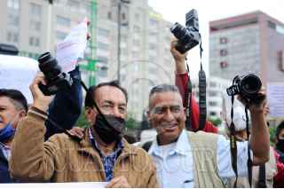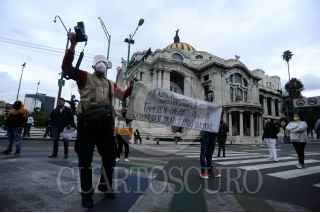 CIUDAD DE MÉXICO, 25UNIO2020.- Fotógrafos de eventos sociales marcharon para pedir apoyo al gobierno feceral ya que su actividad se paró debido a la pandemia de Covid-19. El contingente partió del Hemiciclo a Juárez rumbo al zócalo. FOTO: MOISÉS PABLO/CUARTOSCURO.COM