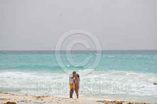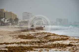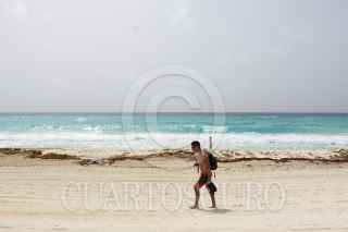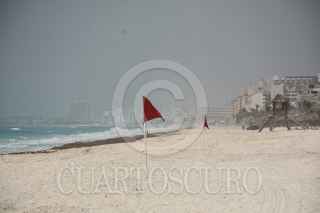 CANCÚN, QUINTANA ROO, 25JUNIO2020.- Pocos turistas de los hoteles aledaños acuden a las playas. Mientras se observa el cielo gris debido al paso de la arena del Sahara a este destino turístico. FOTO: ELIZABETH RUIZ /CUARTOSCURO.COM
