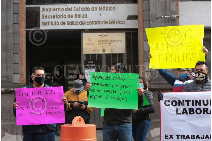 Personal de salud que fue despedido a finales del año pasado se manifestaron en el ISEM para exigir les sea devuelto si trabajo, argumentan que les fue prometido ser restablecidos en el INSABI pero hasta el momento no ha pasado nada de eso. FOTO: CRISANTA ESPINOSA AGUILAR /CUARTOSCURO.COM