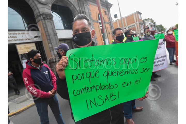Personal de salud que fue despedido a finales del año pasado se manifestaron en el ISEM para exigir les sea devuelto si trabajo, argumentan que les fue prometido ser restablecidos en el INSABI pero hasta el momento no ha pasado nada de eso. FOTO: CRISANTA ESPINOSA AGUILAR /CUARTOSCURO.COM