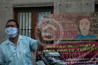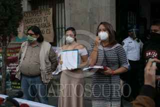CIUDAD DE MÉXICO, 26JUNIO2020.- Familiares de la abogada Susana Prieto Terrazas, activista y defensora de los derechos laborales y quien fue detenida en Matamoros, Tamaulipas el pasado 8 de junio, se reunieron con la titular de la Comisión Nacional de Derechos Humanos (CNDH), Rosario Piedra Ibarra, para solicitarle sea atraído por esa instancia. En forma de apoyo, sindicatos y colectivos independientes se reunieron a las afueras de la CNDH, en el centro de la ciudad, para expresar su apoyo a la defensora y a su familia. FOTO: GALO CAÑAS /CUARTOSCURO.COM