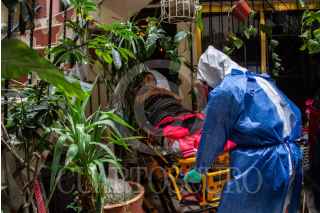 NEZAHUALCÓYOTL, ESTADO DE MÉXICO, 27JUNIO2020.- David Olazagasti de 41 años y Diego Laguna de 23, forman parte del equipo de paramédicos que trabaja en Nezahualcóyotl dentro de la Brigada de rescate. Trabajan en jornadas de 12 por 24 horas repartidos en tres turnos. Con la llegada de la pandemia del virus SARS-CoV-2 trabajan en primera linea; acuden a las casas de los posibles o confirmados por emergencias y si es necesario los trasladan a hospitales COVID-19 cercanos. Cada paciente cambian de traje protector y lavan todo su equipo incluyendo ambulancia. Nezahualcóyotl, con un corte hasta el día de ayer sumaba 3, 391 casos, considerado el municipio con el mayor número de contagios del Estado de México. FOTO: ANDREA MURCIA /CUARTOSCURO.COM