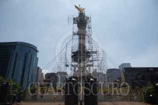 CIUDAD DE MÉXICO, 27JUNIO2020.- El Secretario de Obra de la Ciudad de México anunció que se espera que los trabajos de rehabilitación de la estructura del Ángel de la Independencia quedarán listos en agosto. FOTO: MAGDALENA MONTIEL /CUARTOSCURO.COM