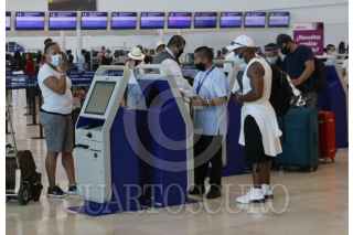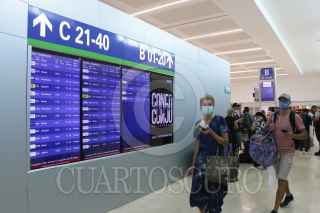 CANCÚN, QUINTANA ROO, 28JUNIO2020.- Han empezado a subir las operaciones en el Aeropuerto Internacional de Cancún (AIC), que este domingo tiene programadas 97, cerrando la tercera semana de reanudación de la actividad turística con un total de 540 operaciones. El reporte del AIC indica que del total de operaciones programadas en esta semana que concluye, 188 fueron internacionales y 352 nacionales, lo cual refleja la respuesta del turismo nacional a la reanudación de la actividad turística en el Caribe Mexicano. De las 97 operaciones programadas para este domingo, sólo 32 son internacionales, desde y hacia Filadelfia, Fort Lauderdale, Charlotte, Chicago, Nueva York, Houston, Toronto, Miami, Atlanta y Dallas. FOTO: ELIZABETH RUIZ/CUARTOSCURO.COM