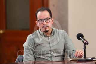 CIUDAD DE MÉXICO, 28JUNIO2020.- Luis Godoy Rueda, coordinador de la plataforma Mercado Solidario (SE); Graciela Márquez Colín, secretaria de Economía, y Leonardo Álvarez Córdova, director general de Innovación, Servicios y Comercio Interior (SE), durante la conferencia con el tema de la entrega de créditos en Palacio Nacional. FOTO: PRESIDENCIA/CUARTOSCURO.COM