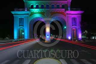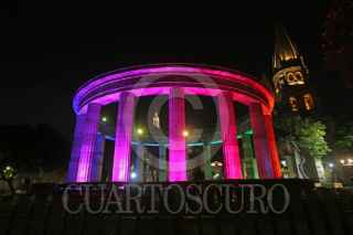 GUADALAJARA, JALISCO, 28JUNIO2020.- Por primera vez en Guadalajara diversos monumentos de la ciudad fueron iluminados con los colores del arcoíris, representativos de la diversidad sexual, esto para manifestar apoyo a la comunidad LGBT tras celebrarse el Gay Pride 2017. FOTO: FERNANDO CARRANZA GARCIA / CUARTOSCURO.COM