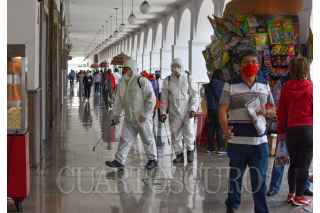 El Estado de México continúa en Semáforo Rojo por la contingencia por COVID-19, algunos espacios públicos como los Portales de Toluca ya comienzan a tener más afluencia de personas preparándose para el cambio a Semáforo Naranja, el uso de cubrebocas es esencial así como se continúan realizando trabajos de sanitizacion. FOTO: CRISANTA ESPINOSA AGUILAR /CUARTOSCURO.COM