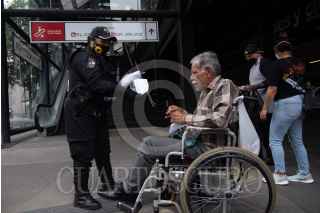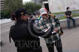 CIUDAD DE MÉXICO, 30JUNIO2020.- Elementos de la Secretaría de Seguridad Ciudadana (SSC) realizaron la entrega gratuita de cubrebocas a traseúntes en la glorieta de insurgentes, para incrementar las medidas de sanidad durante la pandemia de coronavirus (covid-19). FOTO: MARIO JASSO /CUARTOSCURO.COM