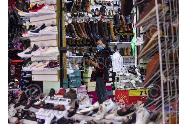 Locatarios de la nave de secos del Mercado Juárez continúan con las labores de limpieza de mercancía y de los 400 locales del lugar en espera de poder reanudar sus ventas cuando se dé el cambio en el semáforo y pase de rojo a naranja, los cuales estuvieron varias semanas durante la contingencia por COVID-19. FOTO: CRISANTA ESPINOSA AGUILAR /CUARTOSCURO.COM