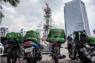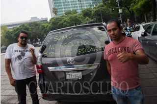CIUDAD DE MÉXICO, 30JUNIO2020.- Trabajadores de la aplicación Uber se manifestaron en el Ángel de la Independencia para exigir a las autoridades prestaciones y ayuda durante la pandemia de coronavirus (covid-19) que se vive en el país. FOTO: MARIO JASSO /CUARTOSCURO.COM