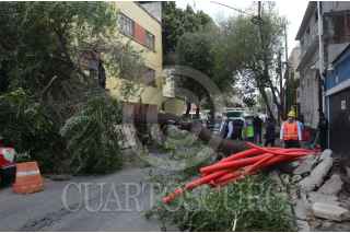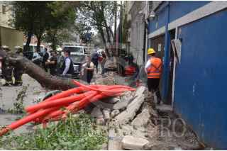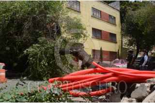 CIUDAD DE MÉXICO, 01JULIO2020.- Un árbol se cayó en la calle de Lerdo en la colonia Guerrero, justo en la banqueta en donde se vivía el gigante estaban haciendo obras de red eléctrica y la habían levantado la banqueta. FOTO: ARMANDO MONROY/CUARTOSCURO.COM