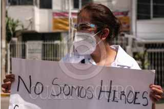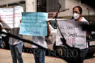 TUXTLA GUTIERREZ, CHIAPAS, 01JULIO2020.- En frente de las oficinas del ISSTECH, al menos una docena de trabajadores del sector salud del estado, se manifestaron exigiendo mejores condiciones laborales para poder atender la emergencia sanitaria por COVID 19. externaron su preocupación por los compañeros del sector que han sido contagiados y los más de 30 compañeros que han perdido la vida por esa enfermedad. FOTO: ISABEL MATEOS /CUARTOSCURO.COM