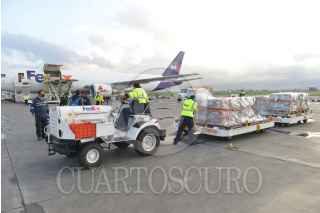 TOLUCA, ESTADO DE MÉXICO, 02JULIO2020.- Arribo un vuelo con equipo médico para combatir la pandemia de Covid-19 procedente de Estados Unidos, en el Aeropuerto Internacional de Toluca. FOTO: PRESIDENCIA/CUARTOSCURO.COM