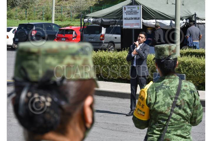 Emanuel Miranda Sánchez y Adán Flores, acudieron al hospital COVID-19 de la 22 Zona Militar ubicada en Santa María Rayón, a rendir un agradecimiento al personal médico y militar, así como ánimo a los pacientes a través de la música durante la contingencia por COVID-19, a través de la interpretación de diversas canciones buscan que crezca la solidaridad y sobre todo transmitir esperanza, planean repetir este ejercicio en otros hospitales interpretando canciones de diversos géneros; el personal de salud que labora en este hospital agradeció a lo lejos la música. FOTO: CRISANTA ESPINOSA AGUILAR /CUARTOSCURO.COM