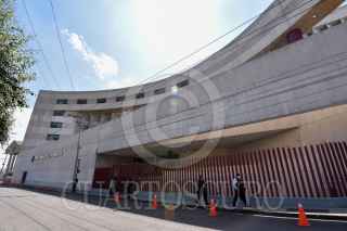 TOLUCA, ESTADO DE MÉXICO, 03JULIO2020.- Aspectos de la fachada de los Juzgados de Distrito en Materia Penal Federal con sede en Toluca, que conocen de los procesos que se instruyen a reos del Penal de Máxima Seguridad del Altiplano, no muestran alteración en sus actividades, a pesar de la investigación que ha emprendido la FGR, ante una supuesta red de corrupción. Desde el mes de abril los juzgados están cerrados al público por la contingencia por COVID-19, y personal de seguridad resguarda la entrada. FOTO: CRISANTA ESPINOSA AGUILAR /CUARTOSCURO.COM