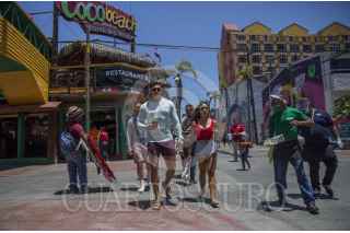 ROSARITO, BAJA CALIFORNIA, 04JULIO2020.- Cientos de turistas, en su mayoría estadounidenses, cruzaron la frontera para festejar el Día de la Independencia a pesar de la pandemia de Covid-19, con un número de contagios creciendo en San Diego, California y que el estado de Baja California se encuentra en Semáforo Rojo. Cerca de 300 establecimientos fueron reabiertos en Rosarito para recibir a los visitantes. FOTO: OMAR MARTÍNEZ /CUARTOSCURO.COM