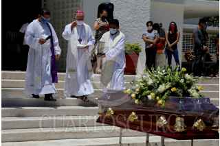 ACAPULCO, GUERRERO, 04JULIO2020.- El cuerpo del sacerdote Andrés Bahena fue despedido con una misa de cuerpo presente con los protocolos que indican la nueva normalidad, luego de morir durante la madrugada por Covid-19 en el Hospital Militar de Acapulco. FOTO: CARLOS ALBERTO CARBAJAL /CUARTOSCURO.COM