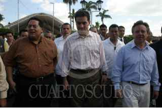 COMALCALCO, TABASCO, 30MARZO2006.- Manuel Andrade Díaz, Gobernador de Tabasco, Daniel Francisco Cabeza de Vaca, Procurador General de la República, y Eduardo Medina-Mora Icaza, Secretario de Seguridad Pública Federal, durante el recorrido por las calles municipales. FOTO: Marco Polo Guzmán/CUARTOSCURO.COM