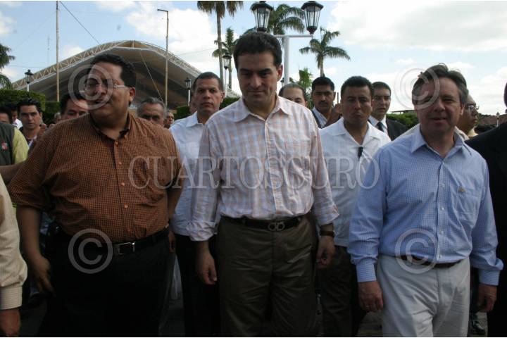 COMALCALCO, TABASCO, 30MARZO2006.- Manuel Andrade Díaz, Gobernador de Tabasco, Daniel Francisco Cabeza de Vaca, Procurador General de la República, y Eduardo Medina-Mora Icaza, Secretario de Seguridad Pública Federal, durante el recorrido por las calles municipales. FOTO: Marco Polo Guzmán/CUARTOSCURO.COM