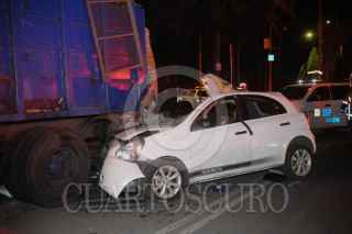 Ciudad de México, 06 julio 2020. Dos hombres que andaban de parranda resultaron lesionados al impactar el auto compacto en que circulaban, contra un camión recolector de basura que estaba estacionado, en Eje 5 Sur Circunvalación en el cruce con Batalla de 5 de Mayo en la colonia Ejército de Agua Prieta en alcaldía de Iztapalapa. Foto: Luis Carbayo/cuartoscuro.com