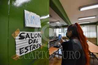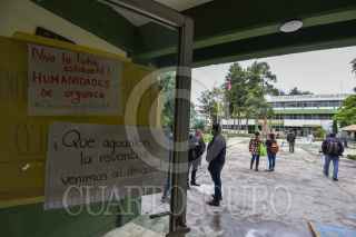 Estudiantes paristas de la Facultad de Humanidades de la UAEM entregaron las instalaciones tomadas hace más de cuatro meses a autoridades universitarias, quienes realizaron un recorrido para ver en qué condiciones las dejaban. FOTO: CRISANTA ESPINOSA AGUILAR /CUARTOSCURO.COM
